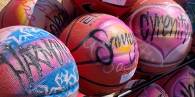 Basketballs, soccer balls, footballs, baseballs and bats Airbrushed LIVE.